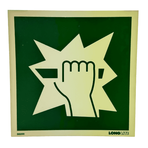 Hätätilanteessa riko lasi 200×200 mm JV muovi.